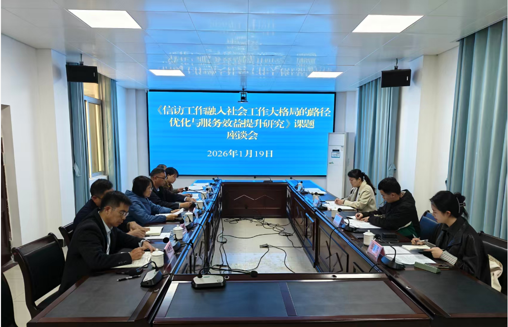 为深入推动信访工作与社会工作融合发展,优化信访治理路径,提升服务效能,2026年1月19日,自治区信访局联合广西大学课题组一行,赴我市开展《信访工作融入社会工作大格局的路径优化与服务效益提升研究》专题调研。市委社会工作部、市信访局相关负责人及业务骨干参加调研座谈。