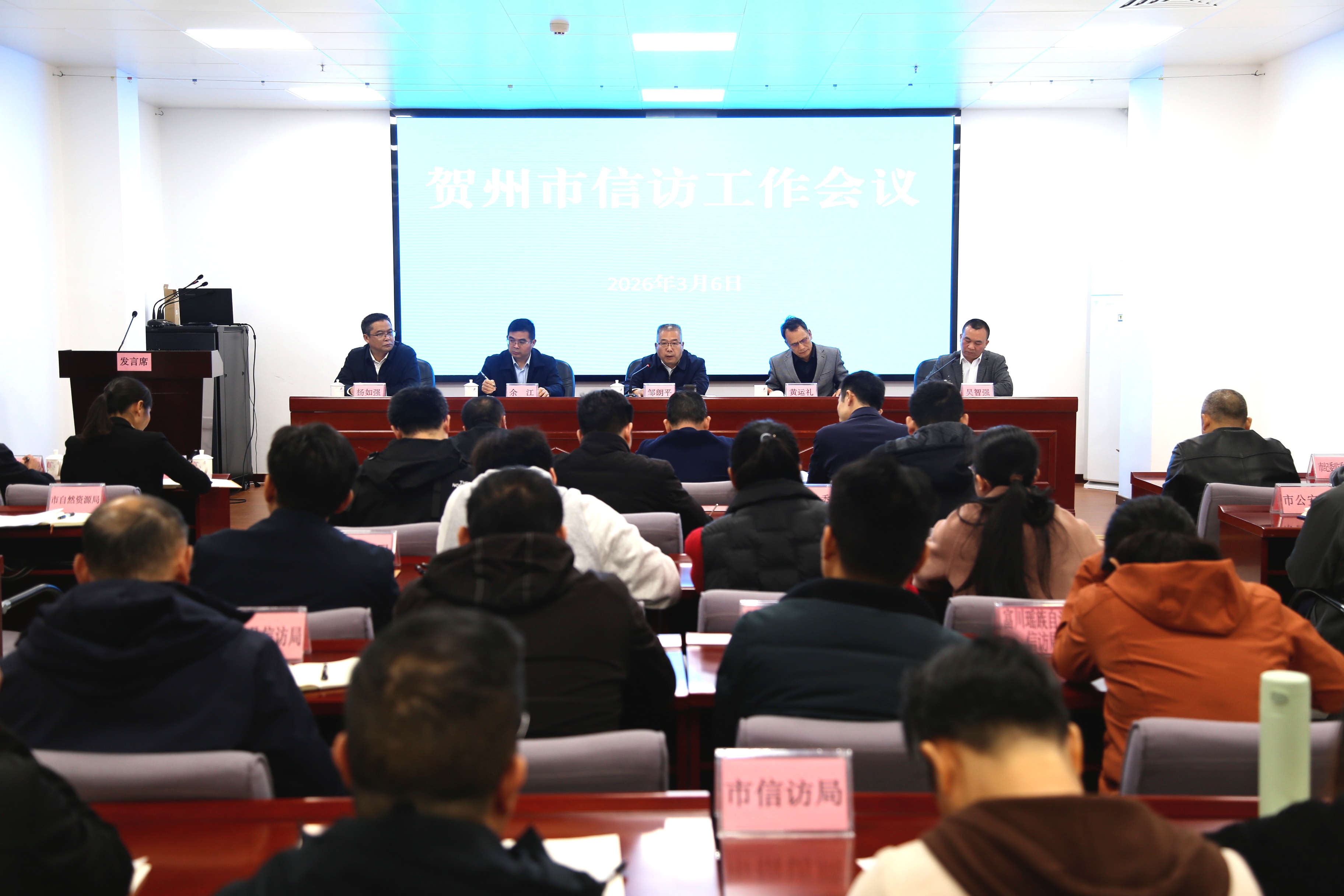 36日,贺州市召开2026年全市信访工作会议,深入贯彻落实党的二十大和二十届历次全会精神,贯彻落实全国、全区社会工作部长会议、信访局长会议和全市社会工作部长会议精神,总结2025年工作,分析当前全市信访形势,部署2026年信访工作重点任务。市信访局党组书记、局长,市委社会工作部副部长(兼)邹朗平出席会议并讲话。